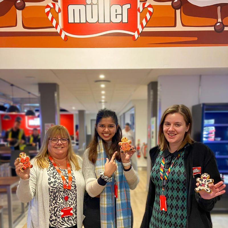 To mark the launch, Müller invited colleagues to take part in a hands-on gingerbread decorating activity. With sleeves rolled up and the festive spirit flowing, team members decorated their own unique gingerbread people using our blank Gingerbread Jacks as the starting point. Charlotte from our Marketing team had the pleasure of visiting the Müller factory during the activity and loved seeing the team’s enthusiasm and excitement first-hand. The creativity on display was fantastic – from traditional festive designs to imaginative characters, every biscuit became a tiny piece of edible art.