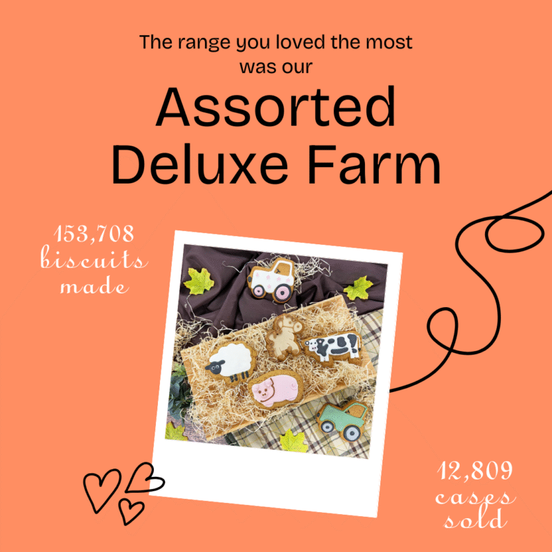 As for customer favourites, this year’s champion continued to be our Assorted Farmyard collection, with a huge 12,809 cases sold (that’s 153,708 biscuits) that headed to shops, garden centres, farm stores, delis and gift retailers.