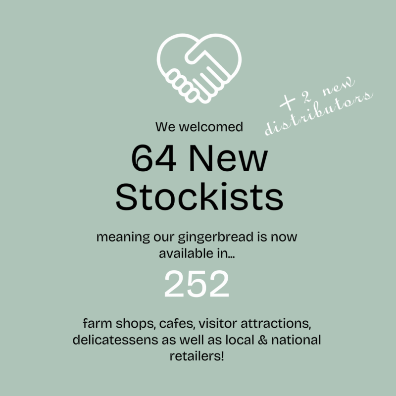 More people than ever wanted to stock our biscuits in 2025. We welcomed 64 new trade customers, along with two new distributors, plus one new export and corporate partner. This brought us to 252 stockists for the year – a clear reflection of the growing appetite for beautifully hand‑iced gingerbread and sugar cookies.