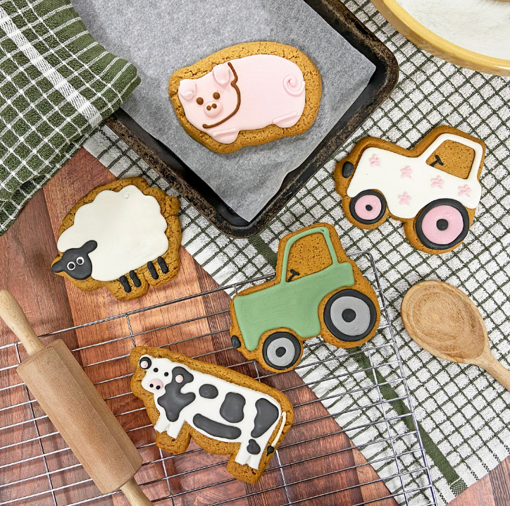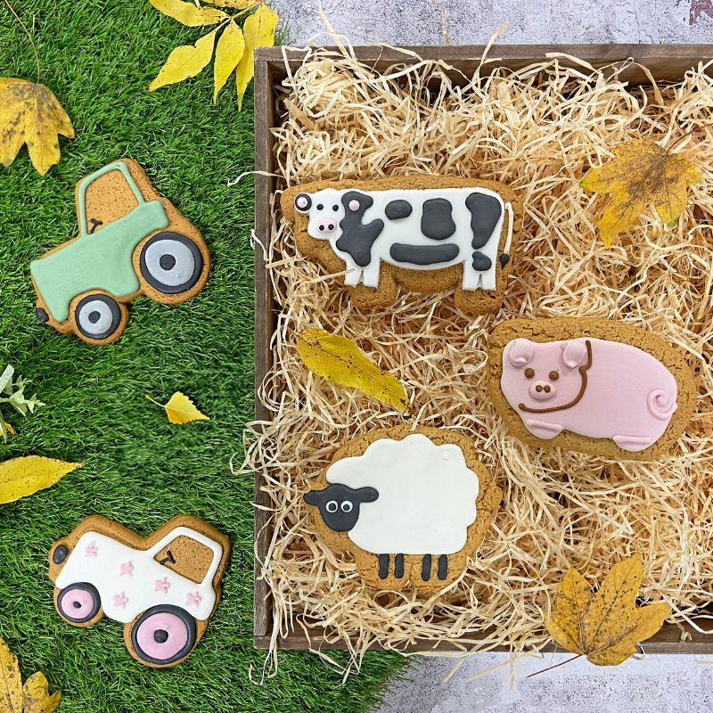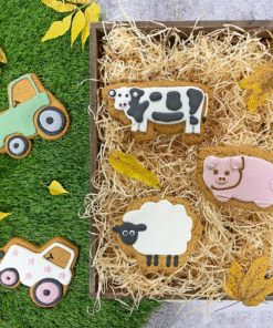 Each biscuit is baked in our delicious signature gingerbread mix, offering a warm, gently spiced flavour with crisp edges and a satisfying snap. Our decorating team then hand‑ices every character with care, detail and personality – from happy cows to playful pigs and colourful tractors – creating biscuits that taste as fantastic as they look. Whether you’re building a themed grazing board, treating little explorers on an outdoor adventure or sending a thoughtful gift, this pack brings sweet farmyard fun to any occasion.