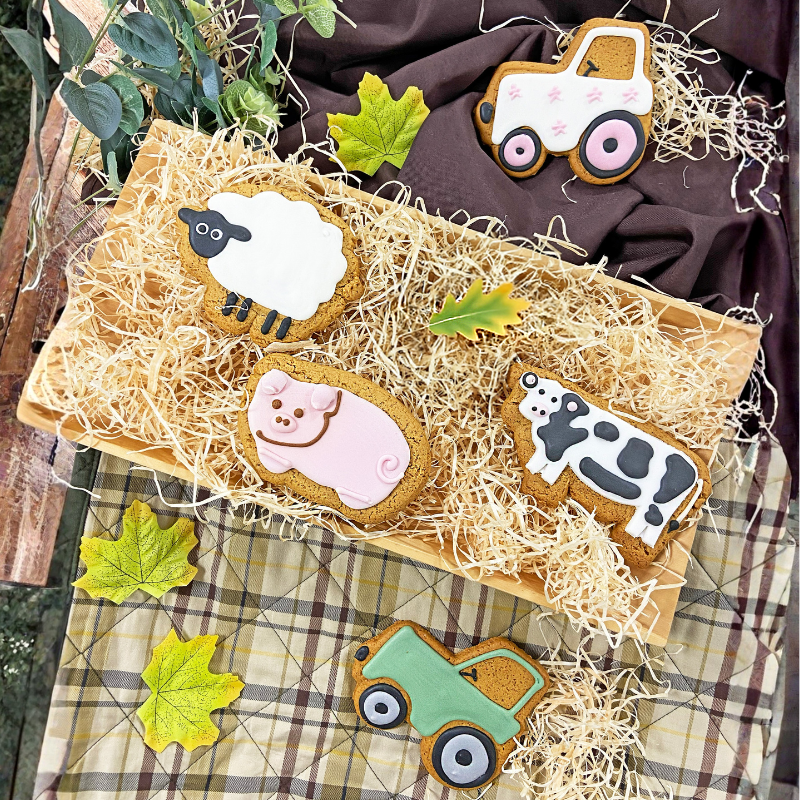 Bring the charm of country life to your celebration with our Farmyard Party Pack – a cheerful collection of 10 beautifully hand‑decorated gingerbread biscuits. Perfect for children’s birthday parties, farm‑themed celebrations, gifting, family picnics, party favours or even taking along on countryside walks or hikes, these delightful treats are designed to be enjoyed by biscuit‑lovers of all ages.