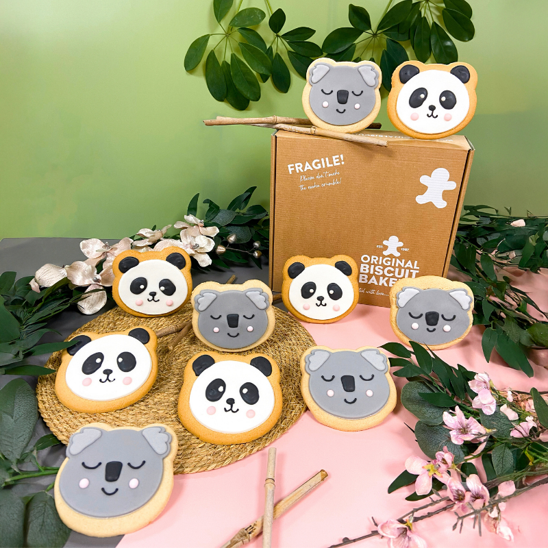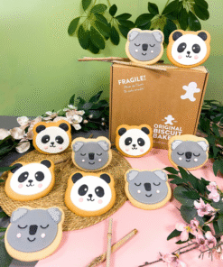 Meet our adorable Panda & Koala Party Pack – the cutest way to sweeten any celebration! Each biscuit is baked from our signature sugar cookie mix, giving you that perfect delicate bite with a smooth, buttery vanilla flavour that melts away beautifully. Every character is hand‑iced by our talented team of artisans, creating treats that look just as good as they taste. With their charming designs, irresistible sweetness and premium bakery‑quality finish, these biscuits are perfect for gifting, party favours or simply treating yourself. Cute, delicious and guaranteed to make everyone smile.
