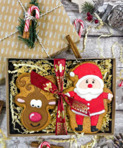 Treat your family and friends this festive period to our delicious gingerbread Santa and Reindeer biscuits. Packaged in their own gift box with a clear lid and ribbon finish this makes a perfect secret Santa gift, stocking filler, thank you teacher gift or wrap up under the tree for a delicious Christmas gift.