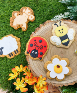 - A mix of our signature gingerbread and sugar cookie mixes (2 x gingerbread sheep, 2 x gingerbread ponies, 2 x gingerbread ladybirds, 2 x gingerbread flowers and 2 x sugar cookie bees).