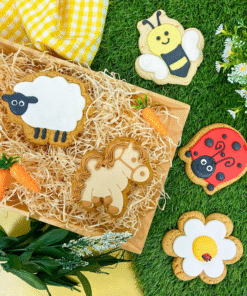 Our Countryside Friends Party Pack brings the charm of the great outdoors to any celebration, featuring a delightful mix of gingerbread sheep, ponies, ladybirds and flowers alongside vanilla sugar cookie bees. Each biscuit is beautifully decorated, offering a balance of warm, gently spiced gingerbread and smooth, sweet sugar cookie flavours, with crisp edges, a satisfying snap and icing that melts effortlessly in the mouth. Perfect for parties, gifting or sharing with loved ones, this colourful assortment is designed to delight all ages – especially those with a love for nature, countryside adventures and beautifully crafted hand-iced treats!