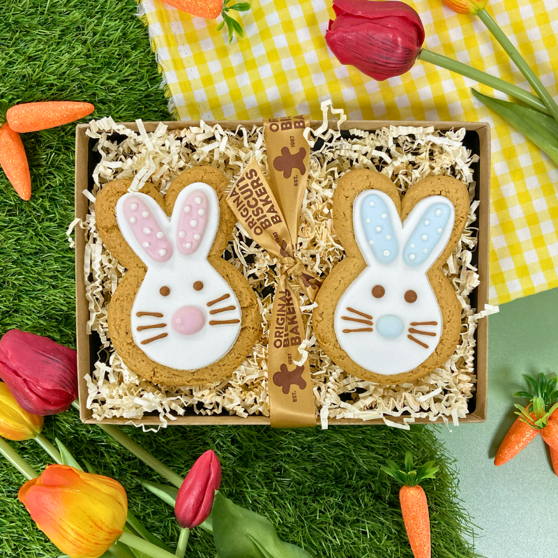 Make your Easter gifting egg‑stra special with our charming Mr & Mrs Bunny Gift Pack Duo – a beautifully presented pair of hand‑decorated gingerbread bunny biscuits, one finished in soft pink and the other in delicate blue. Perfect for children, friends, colleagues, loved ones, or anyone who deserves a sweet springtime surprise, this adorable duo is a thoughtful alternative to traditional chocolate treats – and guaranteed to put a hop in their step!