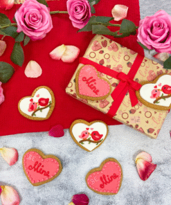 Looking for a sweet treat for your sweet? Our Gingerbread Love Birds Duo Gift Box is the ideal Valentine’s gift! Two beautifully hand-iced gingerbread hearts – one featuring charming love birds and the other with a romantic hand-iced “Be Mine” message – are individually wrapped in crystal-clear cellophane and presented in an attractive gift box with the option to add a personalised gift message. Crafted with warm, aromatic spices and delicate sugarpaste designs, these thoughtful biscuit treats are perfect whether you’re treating your Valentine, surprising a Galentine, spoiling a friend, or showing someone special you care, this irresistible duo is sure to make hearts flutter!